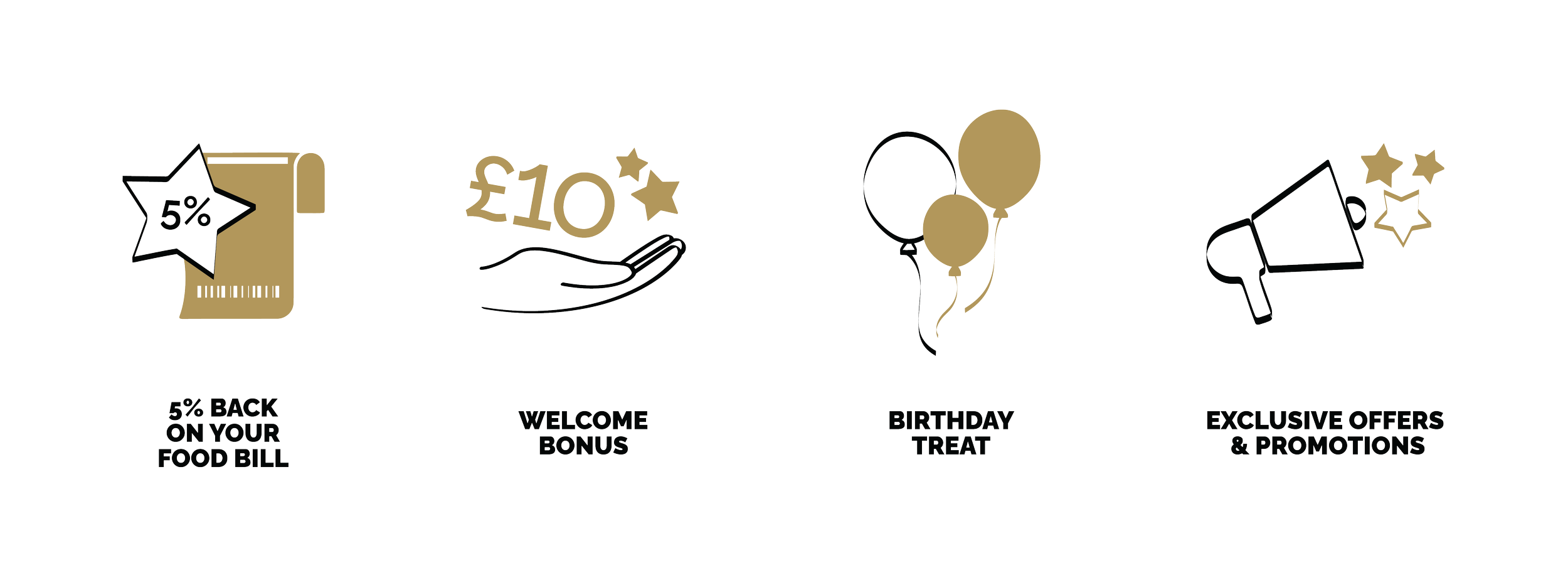 Points become pounds to spend in our restaurants and members get exclusive invites, perks and birthday treats.